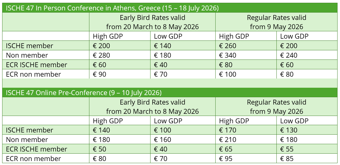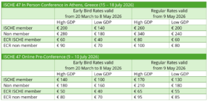 Early bird registration for ISCHE 47 in Athens, Greece, will open on 20 March 2026 and close on 8 May 2026. Standard registration will begin on 9 May 2026.